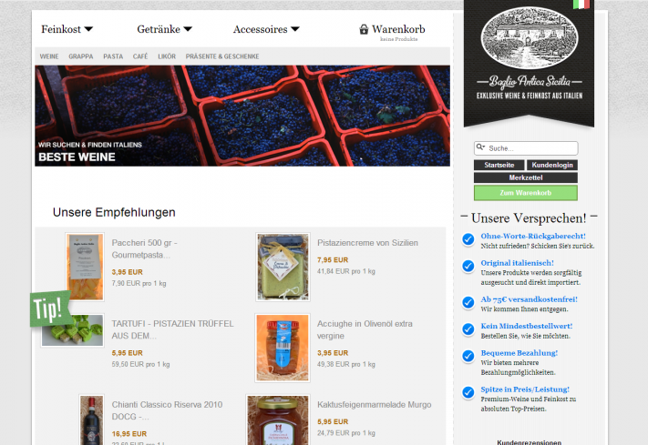 Exklusive italienischen Weine & Feinkost aus Italien - Schwerpunkt Sizilien - nur Direktimporte - Einkauf beim Hersteller - Sommelierservice - ausgesuchte Produkte von Familienproduzenten aus Italien