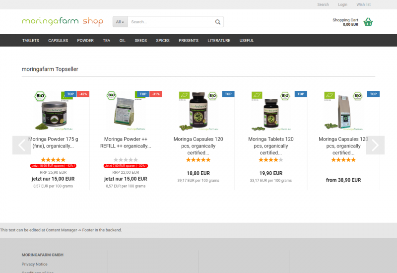 Moringa oleifera ist die nährstoffreichste bekannte Pflanze der Erde. Vitamine, Mineralien & Spurenelemente, Phytamine, Amino- & Omegasäuren stecken in diesem unscheinbaren Baum/Strauch. Biologisch zertifiziertes Moringa erhalten Sie hier in Form von Kapseln, Tabletten, Pulver, Tee und Öl.
