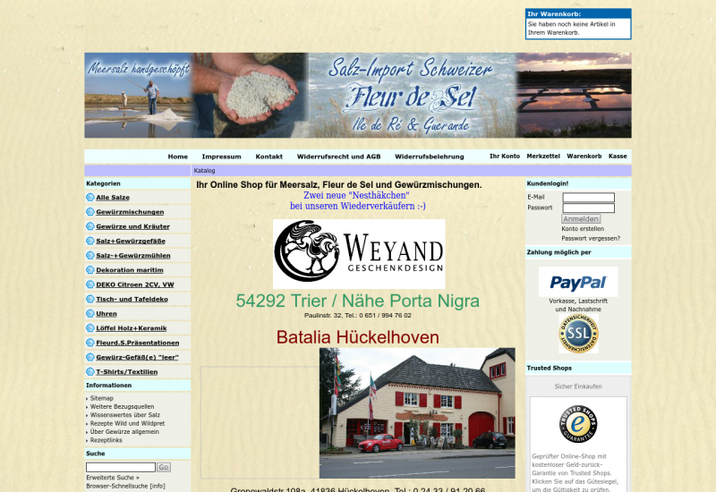 Fleur de Sel, handgeschöpftes Meersalz, Geschenkideen, Handarbeitkeramik, Gewürze, Glasgefäße, Gastronomiezulieferer, Konservierung, Fischgewürze.