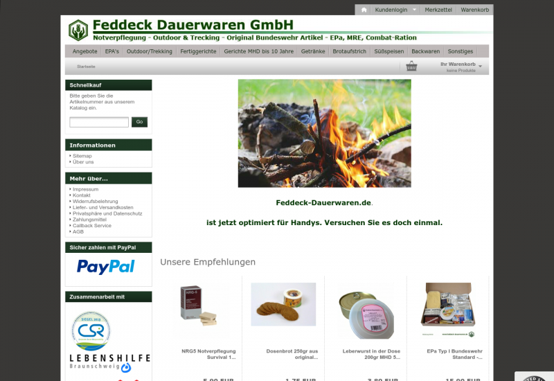 Verkauf von Dauerwaren und EPA's (Einmannpackungen nach Bundeswehrstandart)