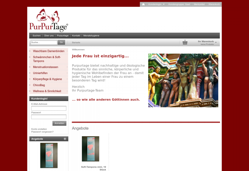 Jede Frau ist einzigartig. Purpurtage bietet nachhaltige und ökologische Produkte für das sinnliche, körperliche und hygienische Wohlbefinden der Frau an - damit wird jeder Tag zu einem besonderen Tag!