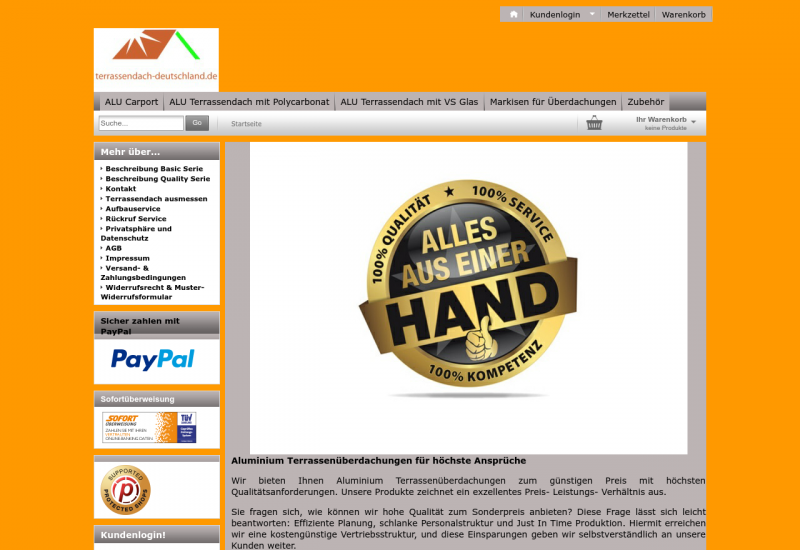 Wir bieten Ihnen Aluminium Terrassenüberdachungen zum günstigen Preis mit höchsten Qualitätsanforderungen. Unsere Produkte zeichnet ein exzellentes Preis- Leistungs- Verhältnis aus.