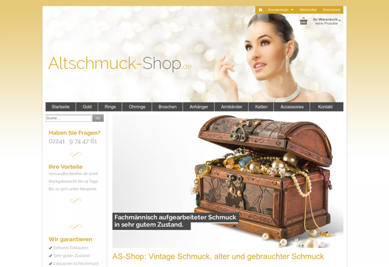 Auf Altschmuck-Shop.de bieten wir Ihnen besondere Einzelstücke und Second-Hand-Schnäppchen aus unserer Altgold-Kollektion. Die Schmuckstücke sind professionell und fachgerecht aufgearbeitet und die Preise liegen weit unter dem Marktwert. Vertrauen Sie unserer jahrelanger Erfahrung.