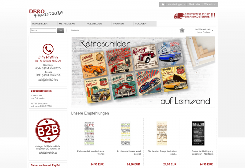 "Die Fundgrube für originelle Dekoideen. Home & Living, Antikes & Kunst, US Deko & Tafeln, Leinwandbilder, Skulpturen, Flaggen, Blechschilder, uvm..."