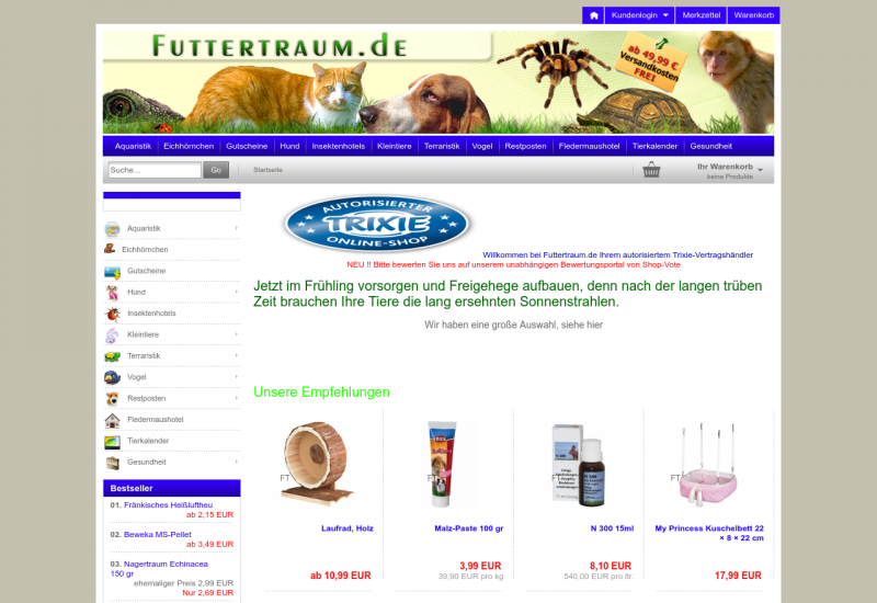 Haustierstadl.de besteht seit mittlerweile 15 Jahren. Unser Onlineshop wurde bereits 1999 gegründet und bietet damals wie heute hochwertige aber dennoch preiswerte Produkte der Haustierbranche. Fachmännische Beratung, Qualität und Flexibilität zeichnen unseren Shop aus und machen Haustierstadl.de zu einem vertrauenswürdigen Händler.
