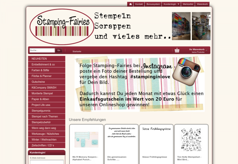 "Bei Stamping-Fairies gibt es alles rund um das Hobby Scrapbooking und Stempeln. Das Sortiment wird stetig erweitert, so dass es immer wieder was neues zu entdecken gibt"