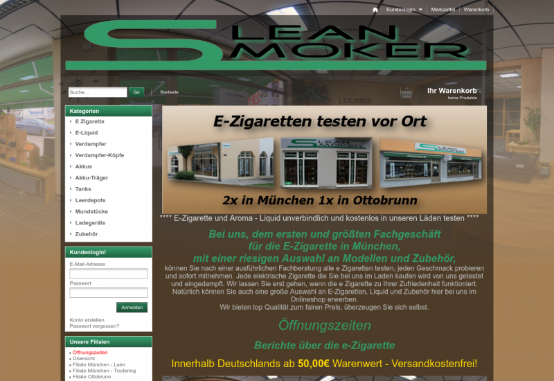 Bei uns, dem ersten und größten Fachgeschäft für die E-Zigarette in München, mit einer riesigen Auswahl an Modellen und Zubehör, können Sie nach einer ausführlichen Fachberatung alle e Zigaretten testen, jeden Geschmack probieren und sofort mitnehmen. Jede elektrische Zigarette die Sie bei uns im Laden kaufen wird von uns getestet und eingedampft. Wir lassen Sie erst gehen, wenn die e Zigarette zu Ihrer Zufriedenheit funktioniert. Natürlich können Sie auch eine große Auswahl an E-Zigaretten, Liquid und Zubehör hier bei uns im Onlineshop erwerben.