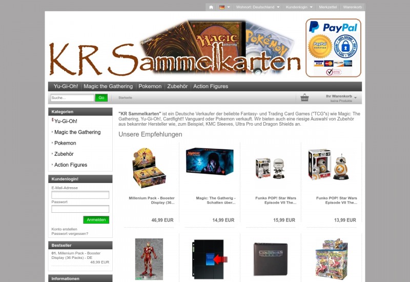 Wir verkaufen Sammelkartenspiele wie YuGiOh!, Magic the gathering, Pokemon.