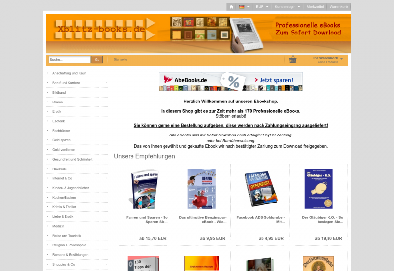 Ebookshop mit über 170 Büchern zum sofort Download nach zahlung