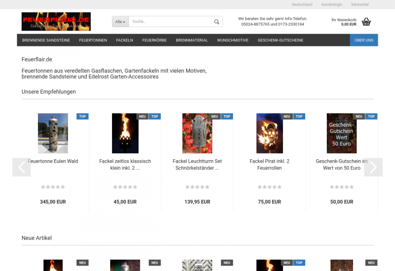 Feuertonnen aus veredelten Gasflaschen, Gartenfackeln, Feuerstellen, Feuerkörbe, Feuerschalen und brennende Sandsteine