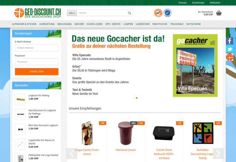 Onlineshop für Geocaching Fanartikel, Zubehör und Geocaching Verstecke.