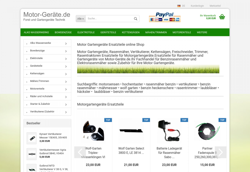 Motor Gartengeräte Ersatzteile online Shop Motor Gartengeräte, Rasenmäher, Vertikutierer, Kettensägen, Freischneider, Trimmer, Rasentraktoren Ersatzteile für Motorgartengeräte.Ersatzteile für Rasenmäher und Gartengeräte von Motor-Geräte.de.Ihr Fachhandel für Benzinrasenmäher und Elektrorasenmäher sowie Zubehör für Ihre Motor Gartengeräte.