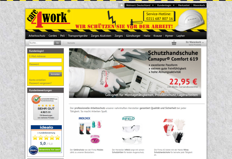 Direktvertrieb von Leitersystemen, Podesten, Schutzhandschuhen,