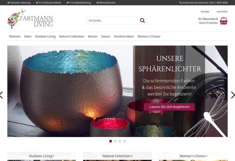 Tauchen Sie ein in die Welt von ZARTMANN LIVING und entdecken Sie die neuesten Dekotrends für Ihr Zuhause. Trendige Canvastaschen ergänzen unser Angebot an Wohnaccessoires, Dekoartikeln und Kerzen. Ob Windlicht, Dekokissen oder Türstopper: lassen Sie sich inspirieren. Naturliebhaber finden in unserer Natural Collection Muscheln, Treibholz, Trockendeko und vieles mehr.