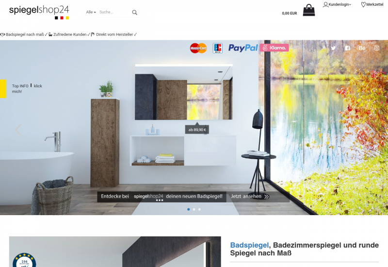Spiegelshop24 Ein spezielles Wohlfühlgefühl im eigenen Raum wünscht sich heutzutage Jedermann. Besonders viel Wert wird hierbei auf Persönlichkeit und Individualität der Wohnräume gelegt. Früher genügte es oft schöne Möbel in einem Zimmer zu kombinieren, heute muss alles passen. Der Trend geht zu absoluten Wohlfühloase sei es im Bad, Schlafzimmer, Flur oder Wohnzimmer, hierbei ist ein Spiegel unumgänglich. Wir haben uns in den letzten Jahren darauf spezialisiert, den Spiegel in unterschiedlichen Größen und ausgefallenen Kombinationen zu entwickeln, um Ihnen bei Ihrer Mission zur Seite zu stehen.