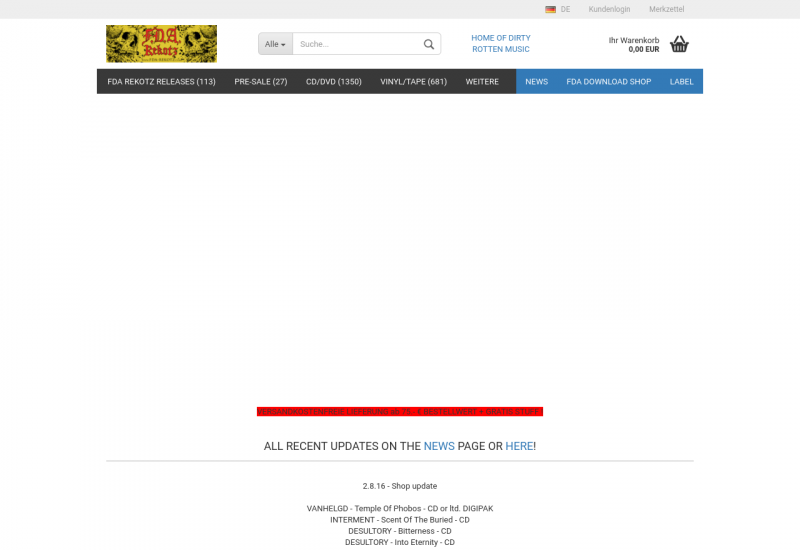 Onlineshop für Heavy Metal, Death Metal, Black Metal, Grindcore incl. releases des Labels FDA Rekotz