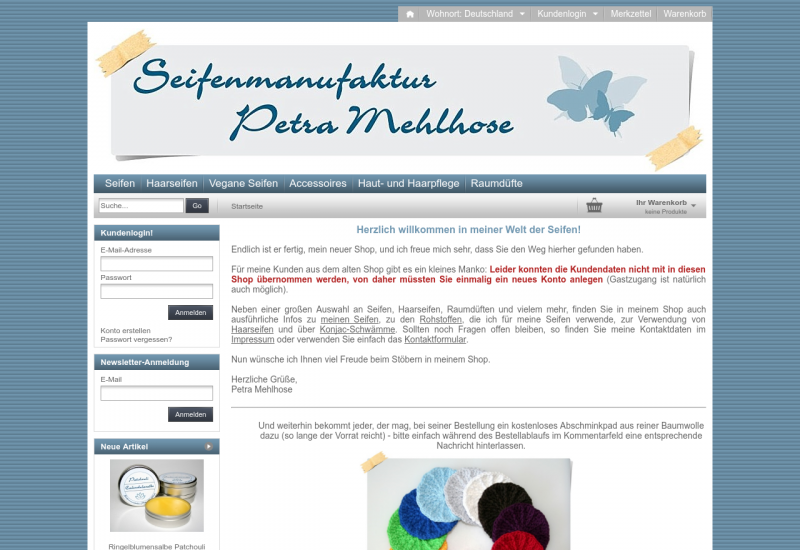 In meinem Shop finden Sie eine vielfältige Auswahl an handgemachten Seifen für Körper, Gesicht und Haare, Pflegeartikel, Kerzen und vieles mehr.