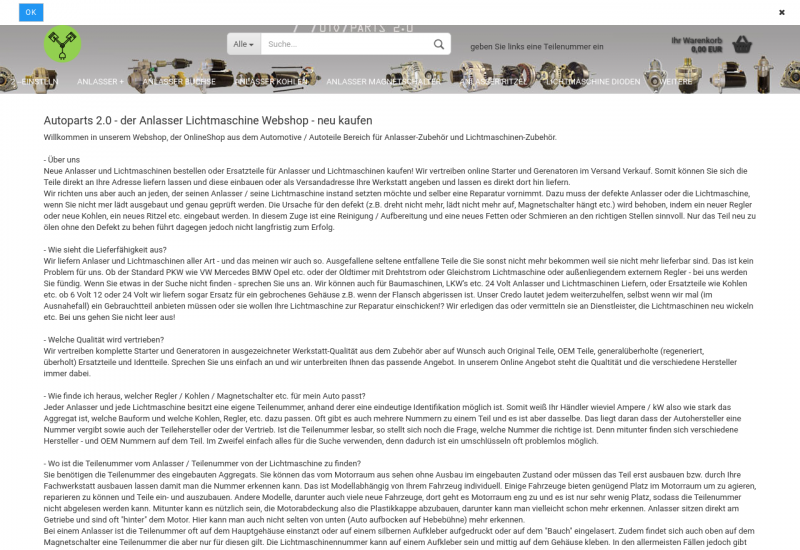 Online Shop für Anlasser und Lichtmaschinen aller Art