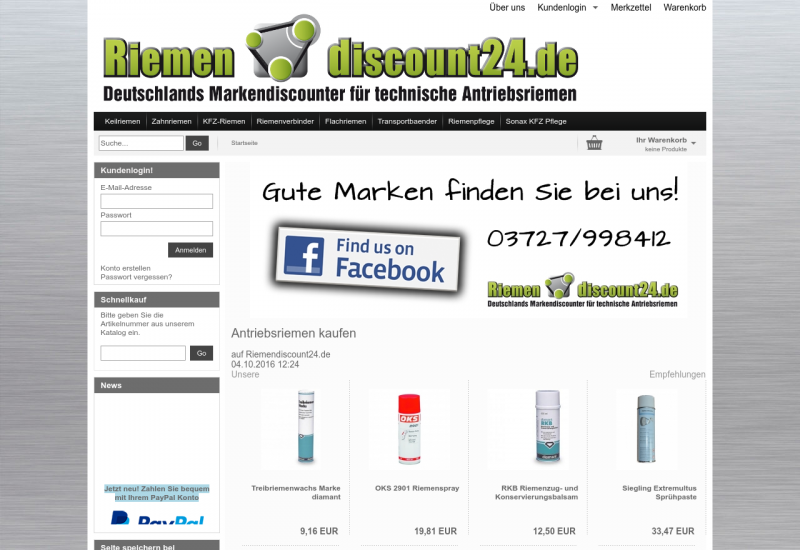 Riemendiscount24.de - Technikplattform und Shopsystem rund um die Themenbereiche Antriebsriemen, Transportbänder u. v. m. Wir liefern Ihnen klassische Keilriemen, Schmalkeilriemen, Keilrippenriemen, Zahnriemen, unkonfektionierte Waren sowie konfektionierte Waren, Pflegeprodukte u.v.m. rund um das Thema technische Antriebsriemen.