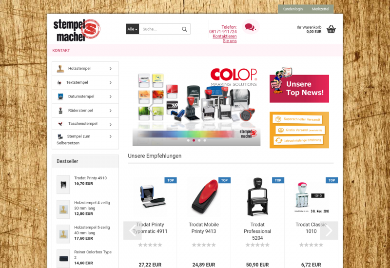 Im Stempelmacher-Shop einfache Bestellung, schnelle Lieferung, portofrei innerhalb Deutschland.Hier finden Sie den einfachen Holzstempel, einen Kunststoff-Stempelautomaten, den stabilen Stativstempel und alles an Stempelzubehör. Auch sonderanfertigungen, Prägezangen und Paginierstempel.