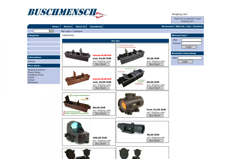Wir vertreiben Outdoorartikel, Waffen und Waffenzubehör. Die Produktpalette umfasst ca. 250 Artikel und wird schrittweise in den Onlineshop integriert.