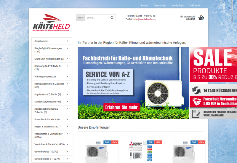 Shop für Klimaanlagen, Kältetechnik, Ersatzteile