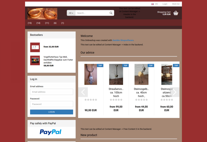 Besonderes wie Holz-und Silberschmuck, Steinvögel, Gartendekoartikel für besondere Leute.