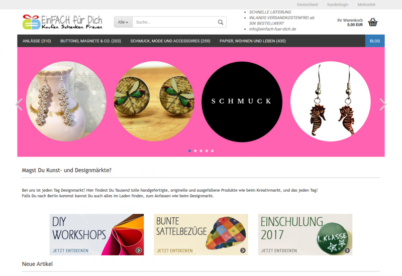 Unseren Shop ist die beste online Ergänzung zum Laden im Kiez. Wir verkaufen Artikel mit Liebe gemacht für Frau, Männer, Kinder egal ob für einen bestimmten Anlass oder alltäglicher Gebrauch.