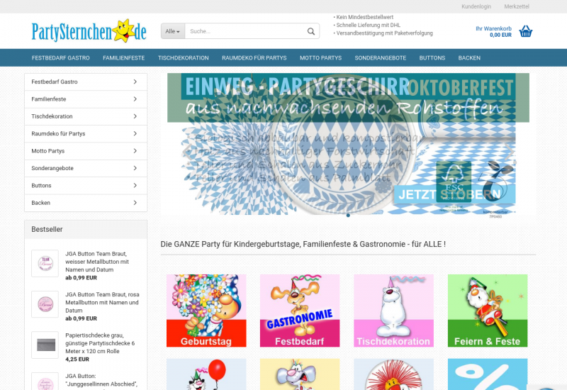 Wir machen Party. Bei partysternchen.de finden Sie alles für Partys, Geburtstage und Familienfeiern. Ob Sie für einen Kindergeburtstag eine Mottoparty veranstalten möchten, oder eine Papiertischdecke für ein Hochzeit suchen - bei Partysternchen.de finden Sie immer eine große Auswahl zu günstigen Preisen.