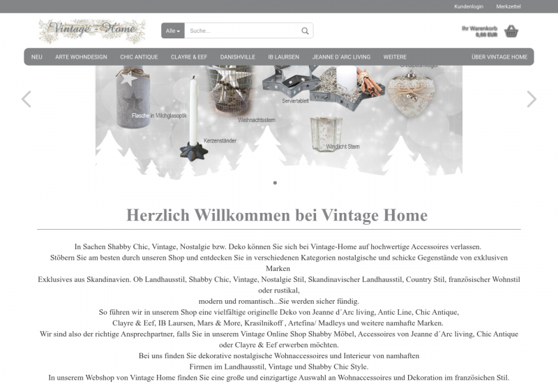Bei uns finden Sie dekorative nostalgische Wohnaccessoires und Interieur von namhaften Firmen im Landhausstil, Vintage und Shabby Chic Style. Wir sind also der richtige Ansprechpartner, falls Sie in unserem Vintage Online Shop Shabby Möbel, Accessoires von Krasilnikoff oder Clayre & Eef erwerben möchten. So führen wir in unserem Shop eine vielfältige originelle Deko von Jeanne d´Arc living, Antic Line, Chic Antique, Clayre & Eef, IB Laursen, Mars & More, Krasilnikoff , Artefina/ Madleys und weitere namhafte Marken. Exklusives aus Skandinavien. Ob Landhausstil, Shabby Chic, Vintage, Nostalgie Stil, Skandinavischer Landhausstil, Country Stil, französischer Wohnstil oder rustikal, modern und romantisch...Sie werden sicher fündig. Stöbern Sie am besten durch unseren Shop und entdecken Sie in verschiedenen Kategorien nostalgische und schicke Gegenstände von exklusiven Marken In Sachen Shabby Chic, Vintage, Nostalgie bzw. Deko können Sie sich bei Vintage-Home auf hochwertige Accessoires verlassen.