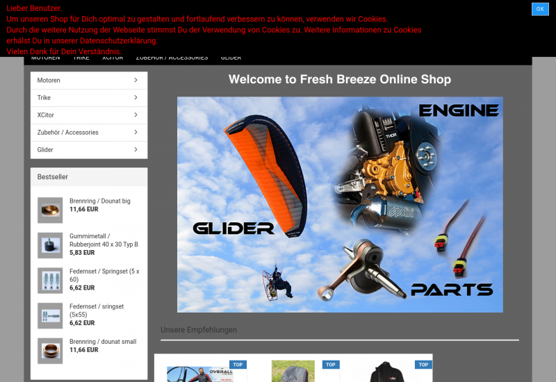 Wir sind Hersteller und Marktführer im Bereich Motorgleitschirm Fluggeräten. Wir bieten unseren Kunden die Möglichkeit, ganze Fluggeräte, Zubehör sowie auch Ersatzteile im Shop zu ordern.