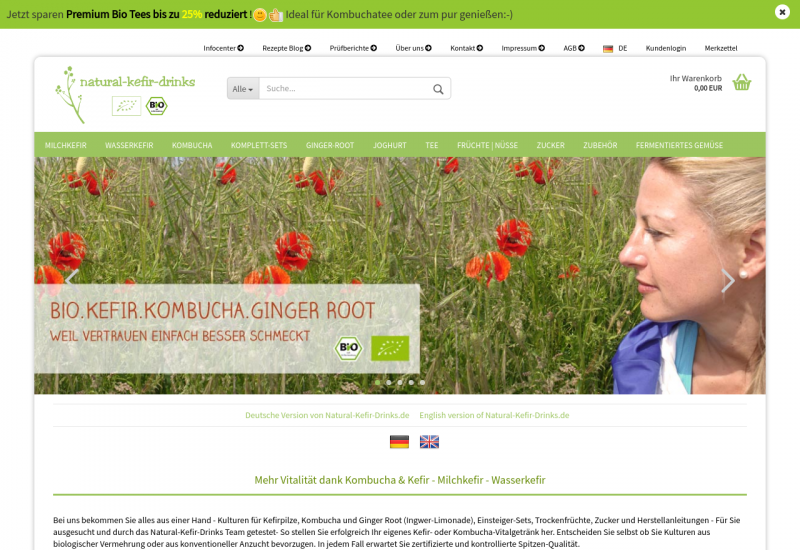 Bei uns bekommen Sie alles aus einer Hand - Kulturen für Kefirpilze, Kombucha und Ginger Root (Ingwer-Limonade), Einsteiger-Sets, Trockenfrüchte, Zucker und Herstellanleitungen - Für Sie ausgesucht und durch das Natural-Kefir-Drinks Team getestet- So stellen Sie erfolgreich Ihr eigenes Kefir- oder Kombucha-Vitalgetränk her. Entscheiden Sie selbst ob Sie Kulturen aus biologischer Vermehrung oder aus konventioneller Anzucht bevorzugen. In jedem Fall erwartet Sie zertifizierte und kontrollierte Spitzen-Qualität.