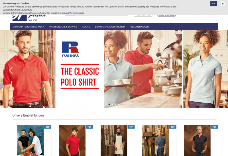 Gastro Perfect - Ihr Berufsmode Online-Shop für Gastronomie und Küche, Corporate Businesswear für Büro und Hotellerie, Beauty und Spa. In unserem Online-Shop bieten wir speziell für die genannten Berufsgruppen Textilien und Accessoires. Zum Beispiel: Latzschürzen, Bistroschürzen, Überwurfschürzen, Kochschürzen, Kochjacken, Kochhosen, Koch-Zandanas, Kochkappen, Pullover, Krawatten, Halstücher, Popeline-Hemden und Popeline-Blusen. Zusätzlich bieten wir unseren Kunden die Möglichkeit die bestellten Textilien direkt mit Ihrem Firmenlogo, Firmensignet, Firmennamen und Namen besticken zu lassen.