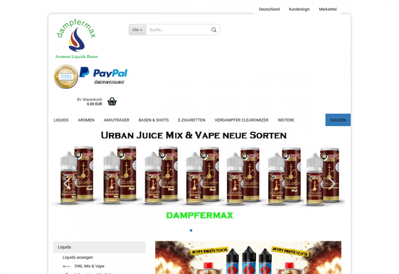 Onlineshop für E Zigaretten und Zubehör Aromen Basen Liquid Wickelzubehör und Hardware