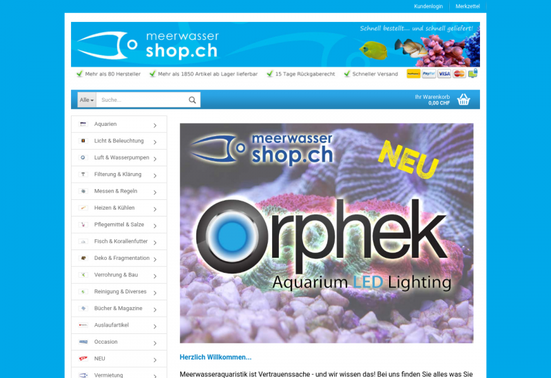 Wir vertreiben eine grosse Anzahl an Markenprodukten für die Meerwasseraquarisitk sowie auch für Süsswasser.