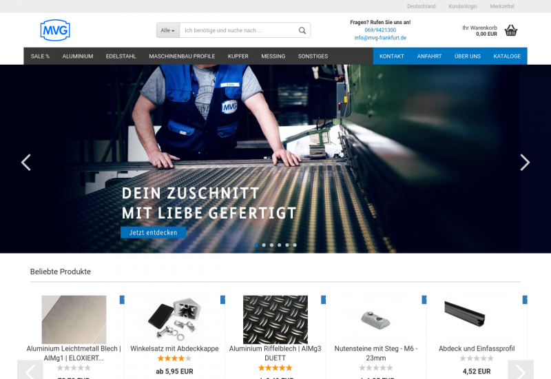 Metallhalbzeuge und Maschinenbauprofile aus Alu, Edelstahl, Kupfer und Messing.