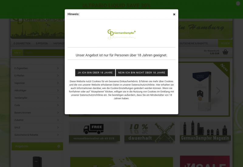 Sehr geehrte Kundin, sehr geehrter Kunde, vielen Dank für Ihr Interesse an unserem Unternehmen GermanDampfer GmbH. Unter der Marke GermanDampfer vertreiben wir seit 2011 elektrische Zigaretten, e-Pfeifen sowie andere Dampfprodukte im Groß- und Einzelhandel. Wir konnten bisher mehrere Tausend Kunden mit unseren Produkten begeistern. Unsere eigene Leidenschaft und Interesse an den Produkten macht unseren besonderen Service aus. Wir nehmen ausschließlich von uns getestete und für sehr gut befundene Artikel in unser Sortiment auf. Bei den vielen Produkten am Markt soll sich unser Kunde sehr gut beraten fühlen und dauerhaft zufrieden sein. Gehören auch Sie zu unseren Kunden und genießen Sie die verlängerte Garantie von GermanDampfer. Als weitere Besonderheit können alle Kunden mit Kundenkonto je Bestellung 10% Rabatt erhalten. Mehr Informationen erhalten Sie unserer Rubrik Rabatt & mehr. Wir haben für Sie ausschließlich geprüfte und qualitätsgesicherte Produkte im Bestand. Jedes elektrische Produkt unterliegt strengsten Kontrollen und hat CE-, RoHS-, oder und FDA- Zertifikate. Sicherheit, Leistung und Haltbarkeit sind für uns die wichtigsten Aspekte und Motivation. Wir möchten für Sie nur die besten Produkte anbieten, und viele tausend Kunden konnten sich bereits davon überzeugen. Bei der Auswahl unserer Hersteller achten wir darauf, dass die höchstmöglichen Produktions- und Qualitätsstandards eingehalten werden. Neben der Qualitätskontrolle am Produktionsstandort erfolgt eine weitere Überprüfung der Geräte vor dem Versand. Wir können Ihnen so ausschließlich funktionsfähige und leistungsstarke sowie sichere elektrische Zigaretten anbieten. Wir führen die größten Hersteller wie zum Beispiel Joyetech, eleaf iSmoka, Kamrytech, Kangertech, Smoktech und einige andere. Die Marktführer überzeugen seit Jahren mit stabilen Geräten und Innovationen. Wir picken für Sie die Rosinen raus! Sie können auch gern mit uns interagieren und Beiträge an unsere facebook-fanpage posten oder uns auf Twitter folgen. Wir versuchen stets aktuelle Informationen und Beiträge für Sie bereit zu stellen. Für Fragen rund um die elektrische Zigarette stehen wir Ihnen gern zur Verfügung. Nutzen Sie unser Kontaktformular oder schreiben Sie eine E-Mail an shop(at)germandampfer.de
