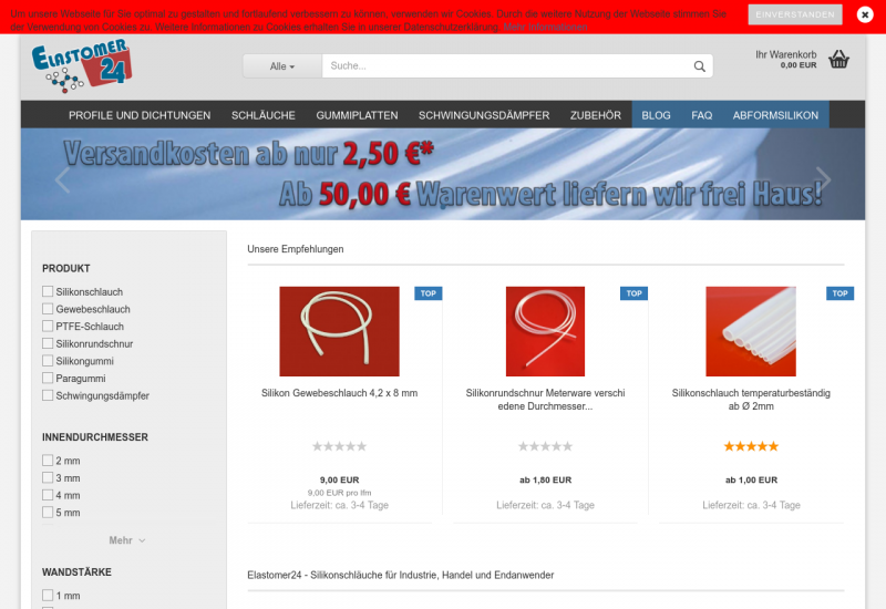 Bei uns im Shop kann man PTFE- und Silikonschläuche, Gummiwaren und noch viele weitere Elastomere-Produkte kaufen.