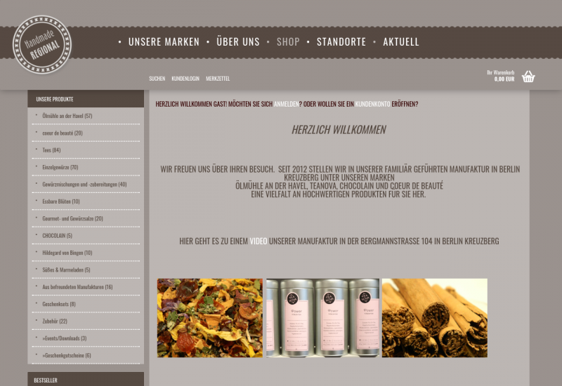 Online Handel unserer Berliner Manufaktur für Öle, Gewürze, Tees, Schokolade und Naturkosmetik