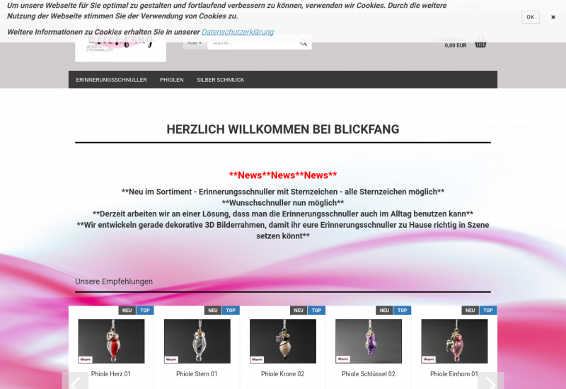 Wir verkaufen derzeit handgefertigte Erinnerungsschnuller, Phiolenketten und Schmucksets und erweitern unser Sortiment stetig.