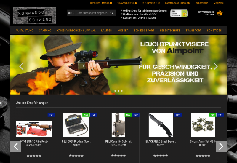 kommando-schwarz ist der Online-Shop für taktische Ausrüstung Wir bieten Produkte aus den Bereichen Bushcraft, Survical, Prepping, Selbstschutz, Camping, EDC, Messer, Lampen, Jagd, Military und Schießsport. Besuchen Sie uns!
