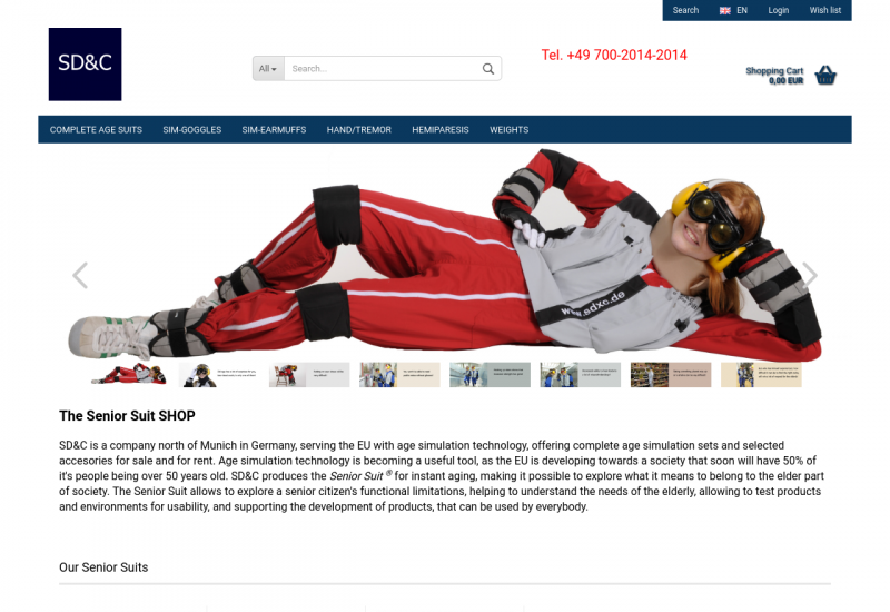 Weltweiter Verkauf von Alterssimulationsanzügen - den Senior Suits - zur ergonomischen Überprüfung und Bewertung der Barrierefreiheit, und von Simulationsgeräten für die Ausbildung von medizinischem Personal und zur Verbesserung des empathischen Verständnisses von Alten und Kranken