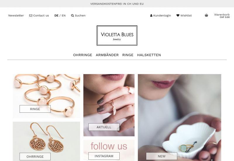 Violetta Blues ist eine einzigartige Schweizer Schmuck Marke. Die Kollektion ist zeitlos, elegant, verspielt und doch mit einem Gespür für neue Trends kreiert. Alle verarbeiteten Steine und Materialien sind von höchster Qualität mit dem Ziel einen Schmuck zu kreieren, welchen man immer und in jedem Alter tragen kann. Man kann sie einzeln tragen oder mehrere Teile miteinander kombinieren. Jedes Schmuckstück ist handgefertigt.