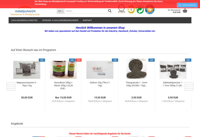 Verkauf von unterschiedlichen Metallpulvern, Granulaten, Spänen, etc.