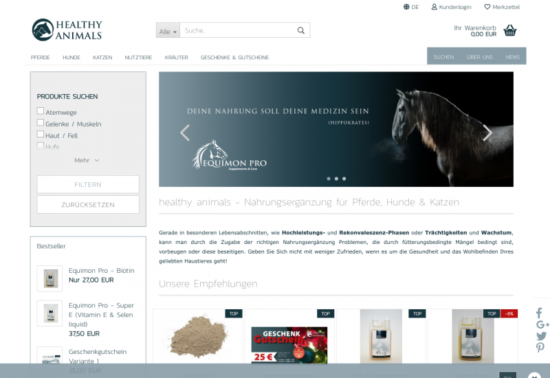 Nahrungsergänzungs- und Pflegeprodukte für Haustiere (Pferde, Hunde, Katzen...)