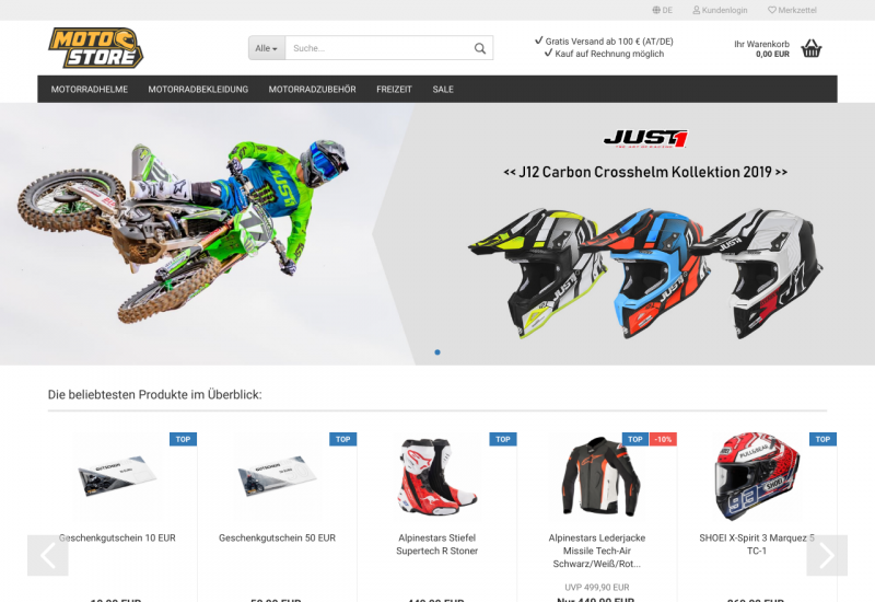Moto-Store.at ist der österreichische Onlineshop für Motorradbekleidung, Helme und Zubehör von Top-Marken.