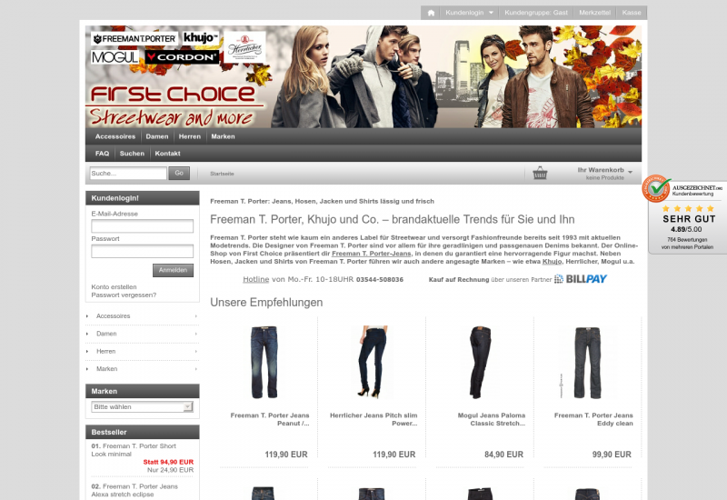 Angebot verschiedener Marken aus dem Streetwear Bereich
