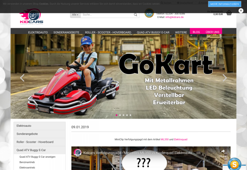 Wir sind spezialisiert auf Akku betriebene Kinderelektroauto's. Die meisten Fahrzeuge sind Lizenziert, also haben Marken wie Mercedes, BMW, Audi, Ford, VW, usw. Wir haben größere und kleinere Kinder Elektroauto's. Mehr Infos finden Sie auf Kidcars.de