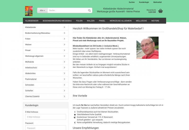 Groß- und Einzelhandel mit Klebebändern aller Art, Abdeckmaterialien und Werkzeugen für die Maler- und Baubranche. Arbeitsschutz. Kostengünstiger Bezug von Klein- und Großmengen.