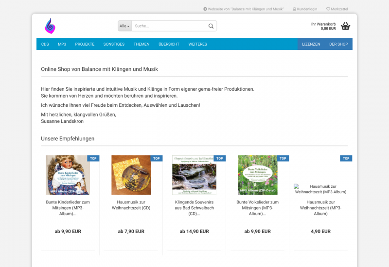 Eigene Produktionen von Susanne Landskron, Balance mit Klängen und Musik. CDs, MP3 Downloads und weitere Produkte für Entspannung, Energie und Inspiration.